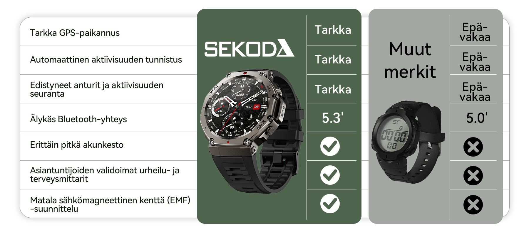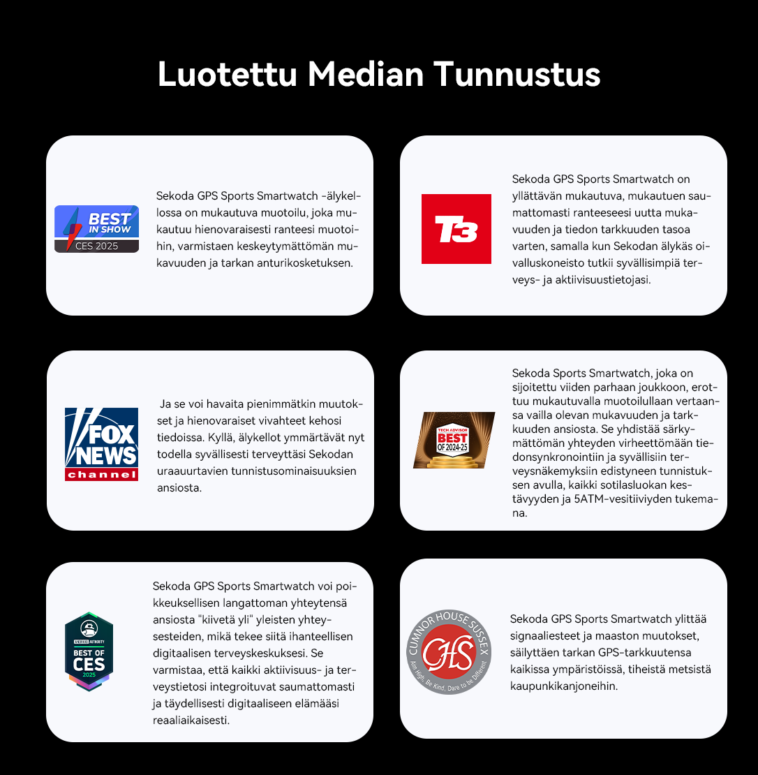 Sekoda urheilusmartwatch tarjoaa laajan valikoiman mukautettavia kellotauluja. Minimalistisesta liike-elämän tyylistä trendikkääseen ja siistiin, ja yksityiskohtaisista kuntotiedoista taiteellisiin esteettisiin ratkaisuihin – voit vaihtaa niitä milloin tahansa saadaksesi uuden ilmeen joka päivä. Kellostasi ei ole enää vain ajanmittari; se on ainutlaatuinen tyylitunnuksesi. Sano hyvästit "yhden koon kaikille" -ulkoasuille ja anna kellotaulusi kertoa tarinasi.