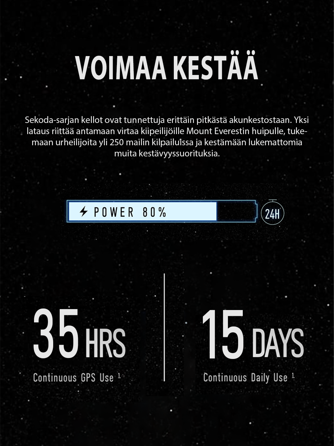 Henkilökohtaisen kokemuksen motivoimana Liam suunnitteli kellon tarkalle GPS-tarkkuudelle, pitkäkestoiselle virralle ja kattavalle seurannalle. Hän testasi sitä hellittämättä haastavilla reiteillä varmistaen luotettavan suorituskyvyn, joka antaa voimaa jokaiselle seikkailijalle. Tänään Sekoda edustaa teknologiaa, jonka ovat suunnitelleet seikkailijat, seikkailijoita varten – suorituskyky ensin, toisena ominaisuudet, joilla on todella merkitystä.